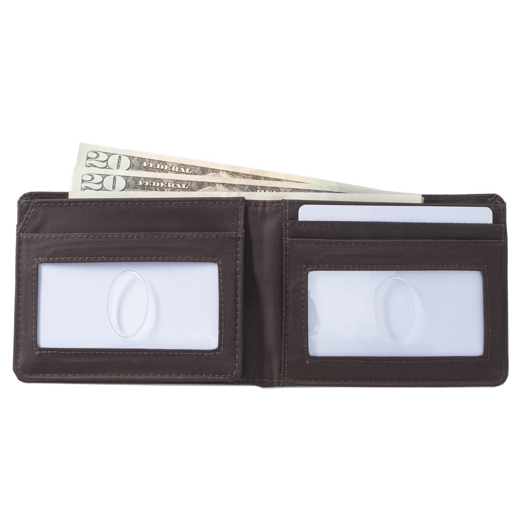 As the name implies, the L-shaped wallet looks like the letter L when fully opened. Is it a tri-fold? Is it a bi-fold? Nobody knows! This clever design incorporates all the best features from the two most popular wallet styles. The wallet opens once to reveal 2 ID windows to show off your good looks and a handful of credit card slots. It opens again to reveal even more credit card slots that are perfect for stashing all manners of plastic, including health insurance cards and store loyalty cards.