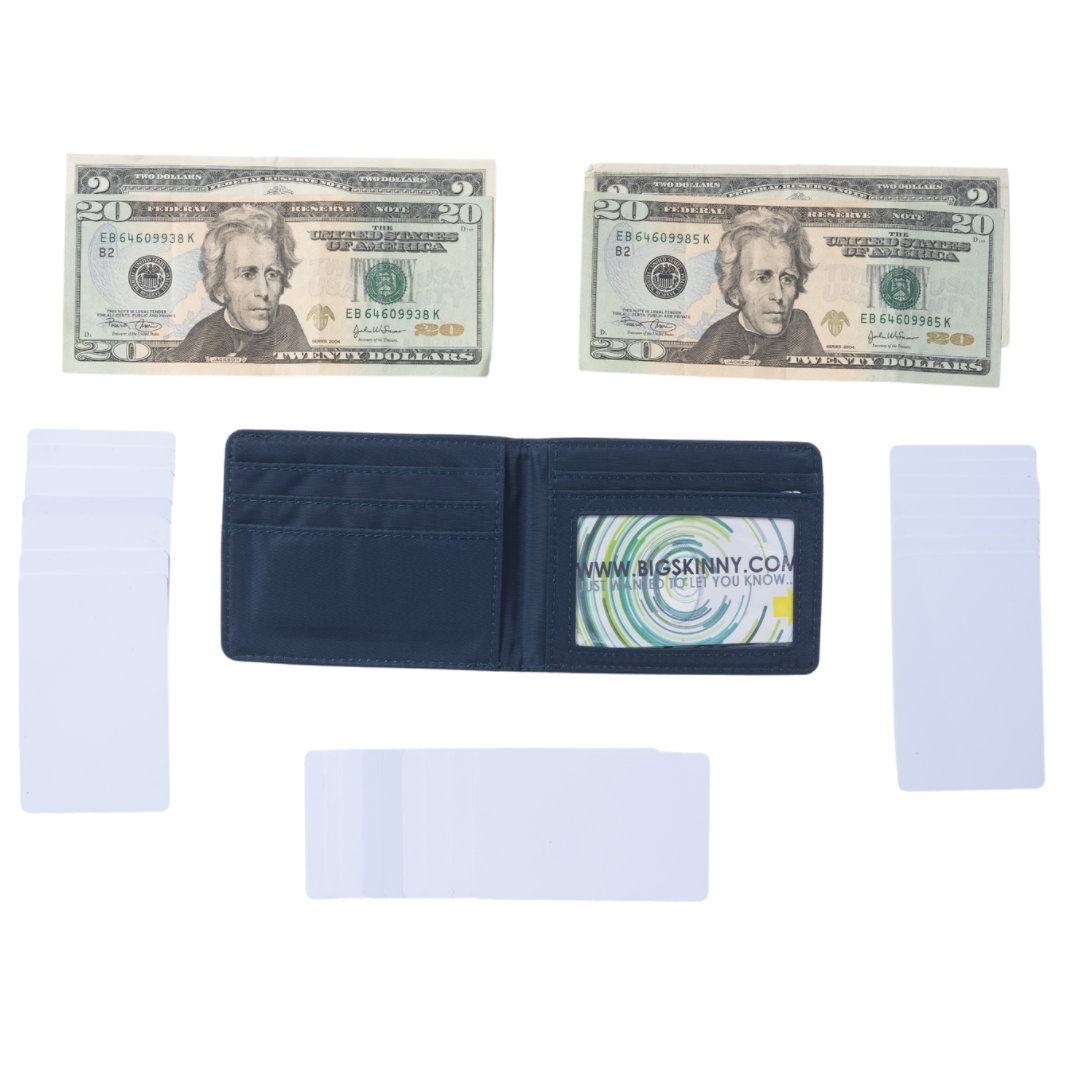 Our multi-pocket bi-fold wallet has been an absolute best-seller for more than 8 years now! See how easy it is to stash your important stuff in one sleek, uber practical wallet. Every pocket is extra wide, so you won't have to jam in your stuff. Because it's made of our proprietary nylon microfiber, it's the thinnest wallet of its kind and even machine washable. The pockets have a non-slip coating inside each for extra security. This multi-pocket wallet will hold up to 20 plastic cards plus your cash and, like all our nylon-microfiber wallets, this model is machine-washable and water-resistant (so if you accidentally leave your wallet in your jeans and it gets laundered - no problem).
