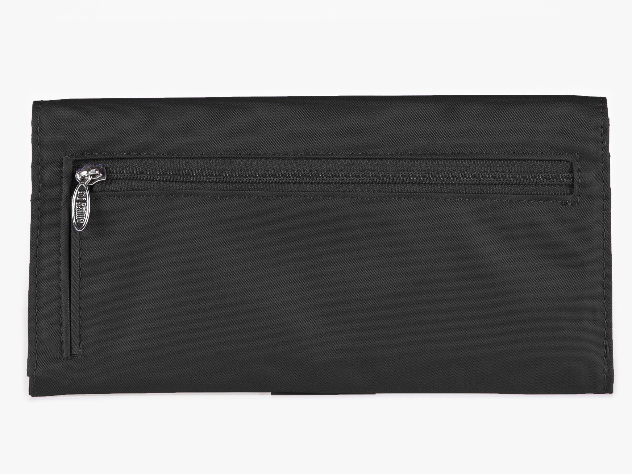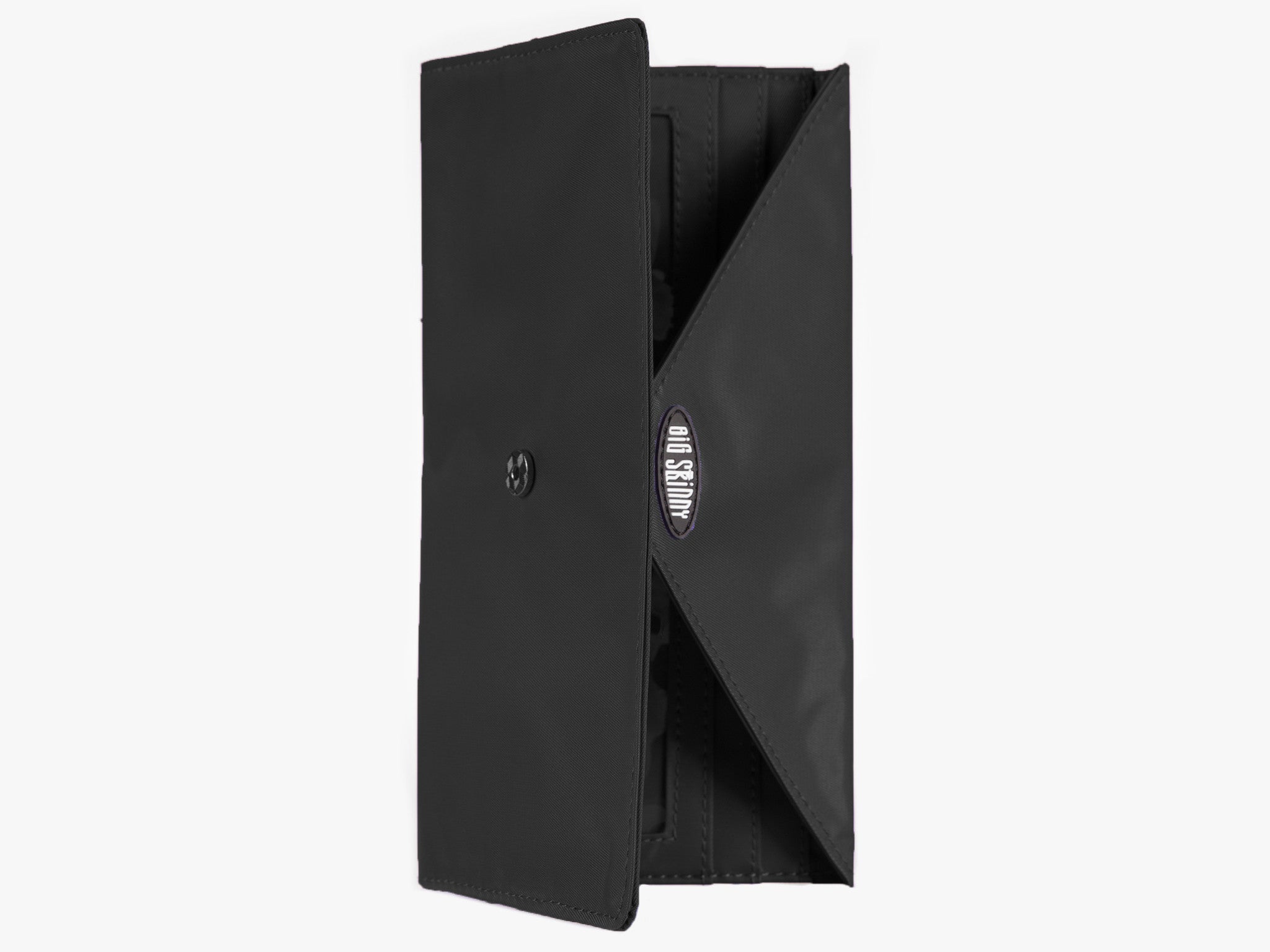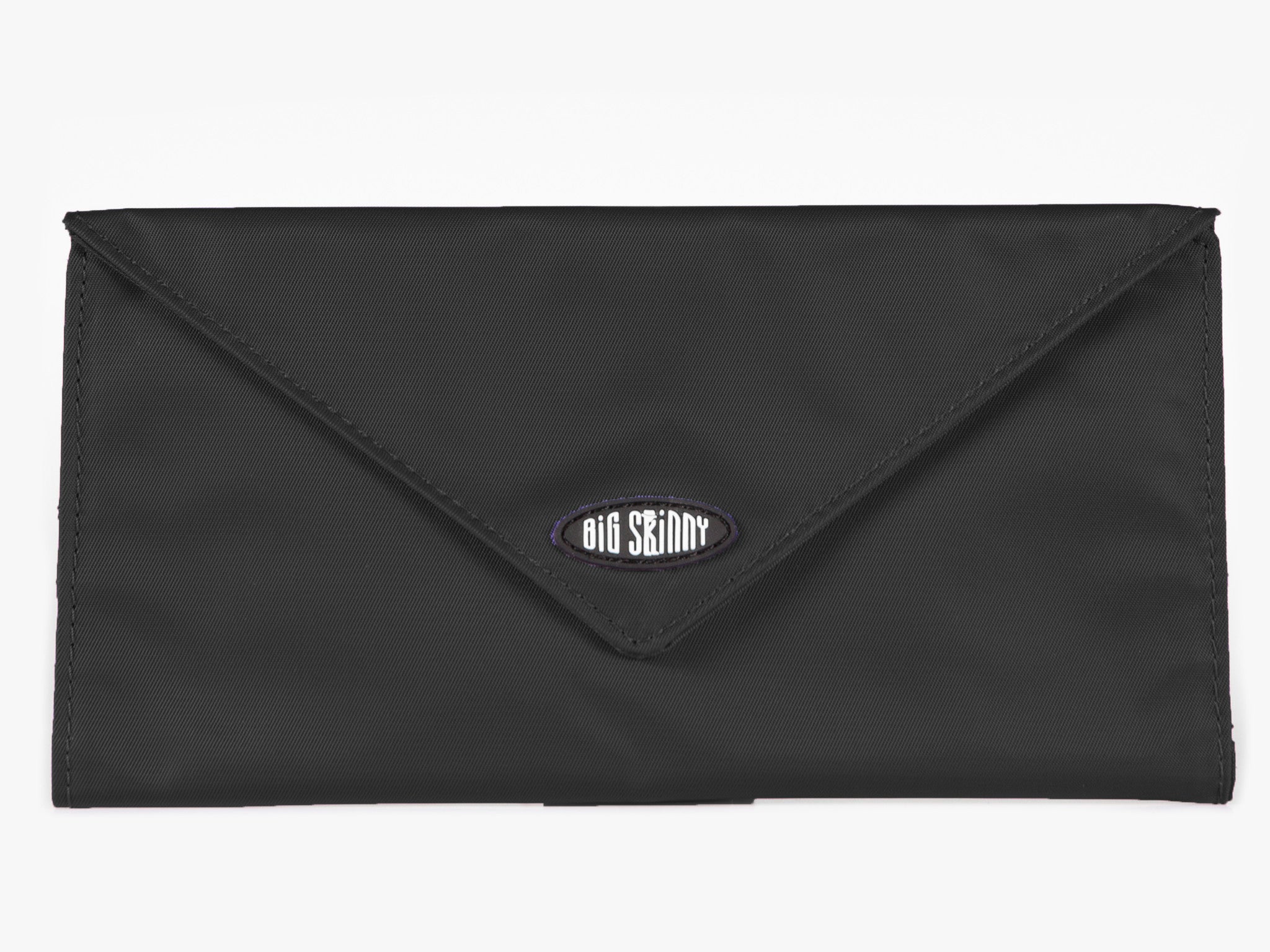 There's more. On the exterior is a full-sized zippered pocket to hold even more of your essentials. It's extraordinarily lightweight because of the high-tech nylon microfiber construction. This material allows us to make the world's skinniest wallets at Big Skinny. We believe there's never a right age to carry around the extra weight of a brick-sized wallet or clutch purse. That's why we invented the Slimvelope. Enjoy!