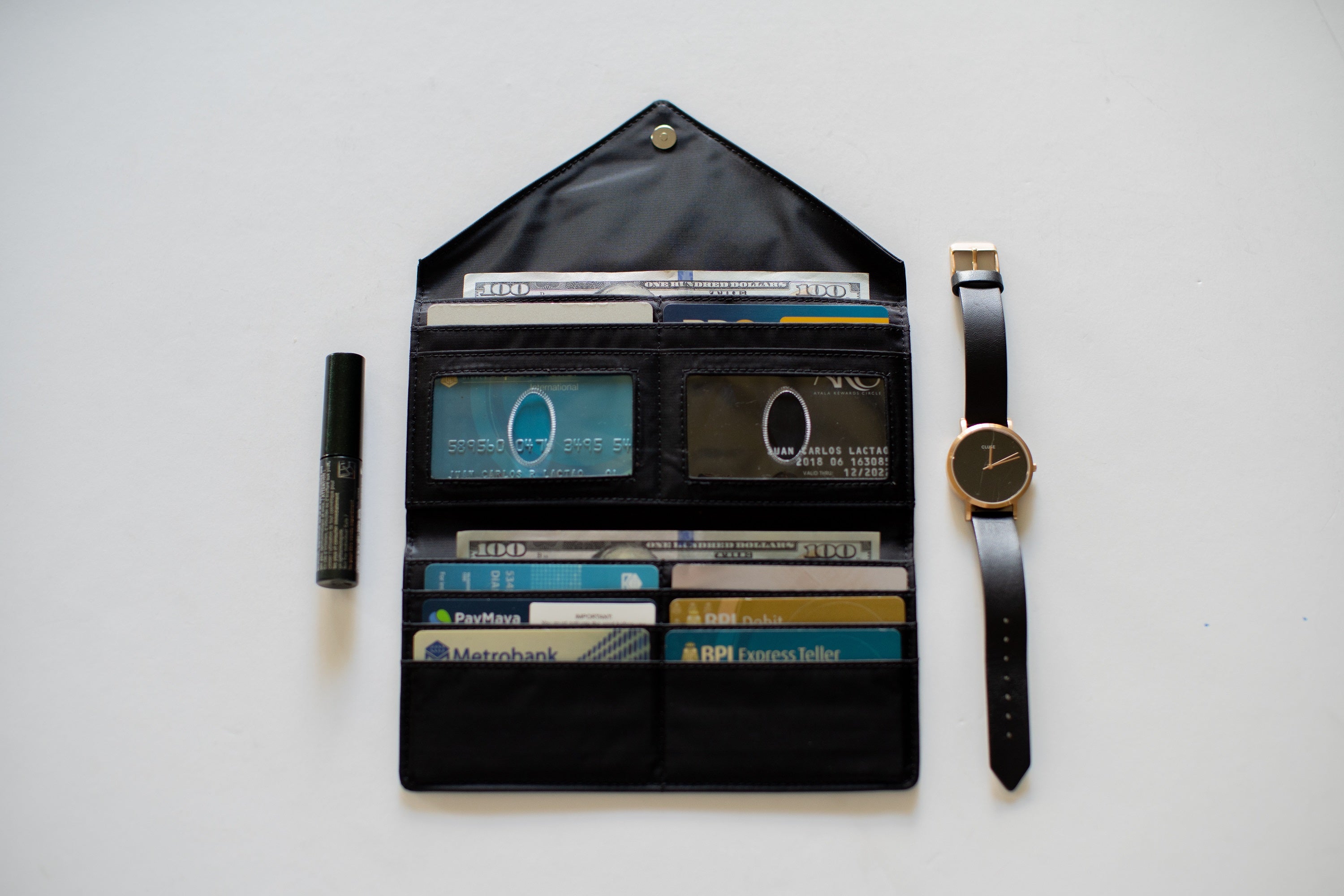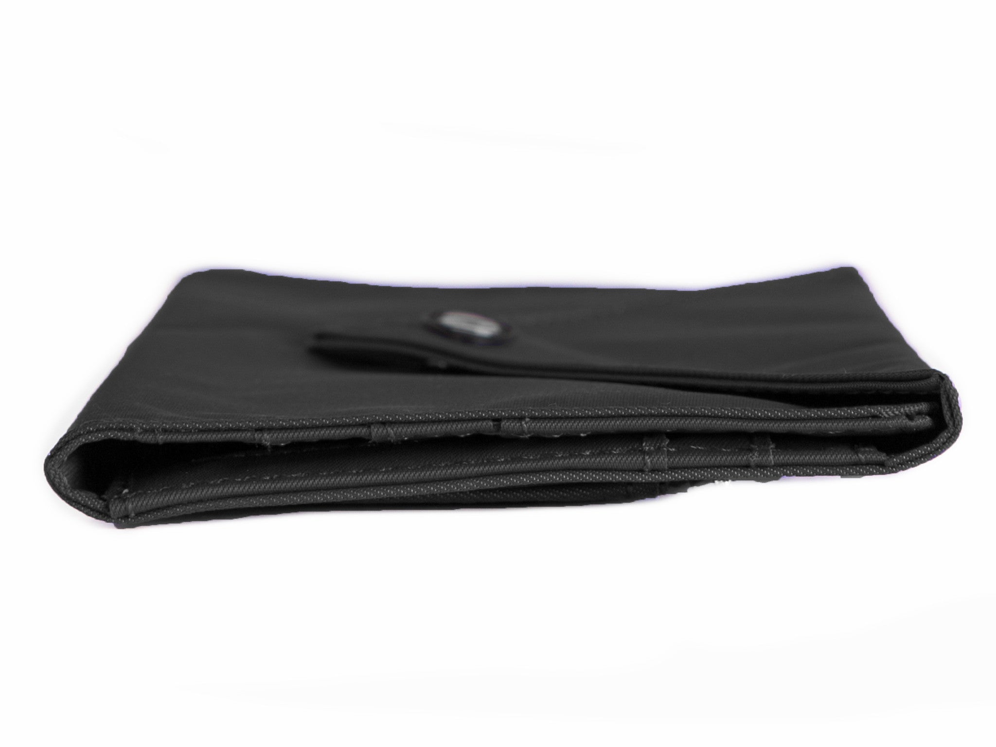 What women love are the surplus of non-slip pockets inside this stylish tri-fold wallet that's fashionable enough to do double duty as an evening clutch. A magnetic snap closure is on the front of the envelope-style wallet. Inside our tri-fold Slimvelope are two checkbook-sized billfolds, two clear plastic ID card pockets, and eight extra wide card pockets. Each holds up to 3-5 cards.