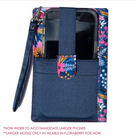 • Cell phone pocket on reverse holds phone in securely with elasticized strap
