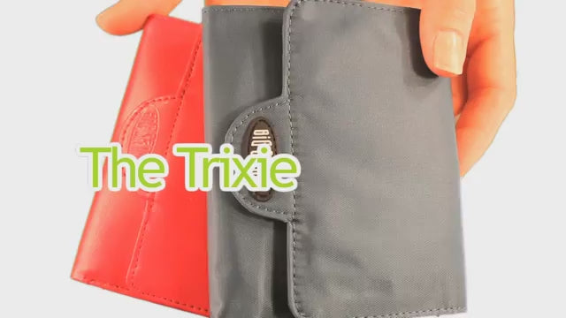 Big Skinny's Trixie Wallet is a cross between the high capacity of our Executive wallet and an expanded version of our regular tri-fold wallet but it leans toward the tri-fold wallet side making it more compact.