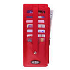 Slim and stacked. The wallet, of course. Fast, Fast, Fast just like the animal or the convertible Jaguar that we've all lusted after for years. This slim wallet model was designed for quick visibility and fast access! So you can see your cards stacked up in a nice tier and take them out even more quickly. The reverse features a clear ID pocket, long billfold or receipt pocket and a large zippered area for your cash, change, keys, phone or what-have-you. Both the billfold area and zippered pocket area can hold full-sized paper bills unlike many other imitators as we take our wallet design very seriously and often overthink every design detail to make sure it works under real world conditions. Holds about 25 plastic cards.