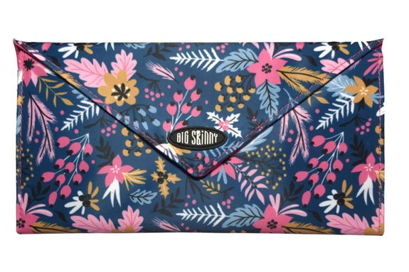 There's more. On the exterior is a full-sized zippered pocket to hold even more of your essentials. It's extraordinarily lightweight because of the high-tech nylon microfiber construction. This material allows us to make the world's skinniest wallets at Big Skinny. We believe there's never a right age to carry around the extra weight of a brick-sized wallet or clutch purse. That's why we invented the Slimvelope. Enjoy!