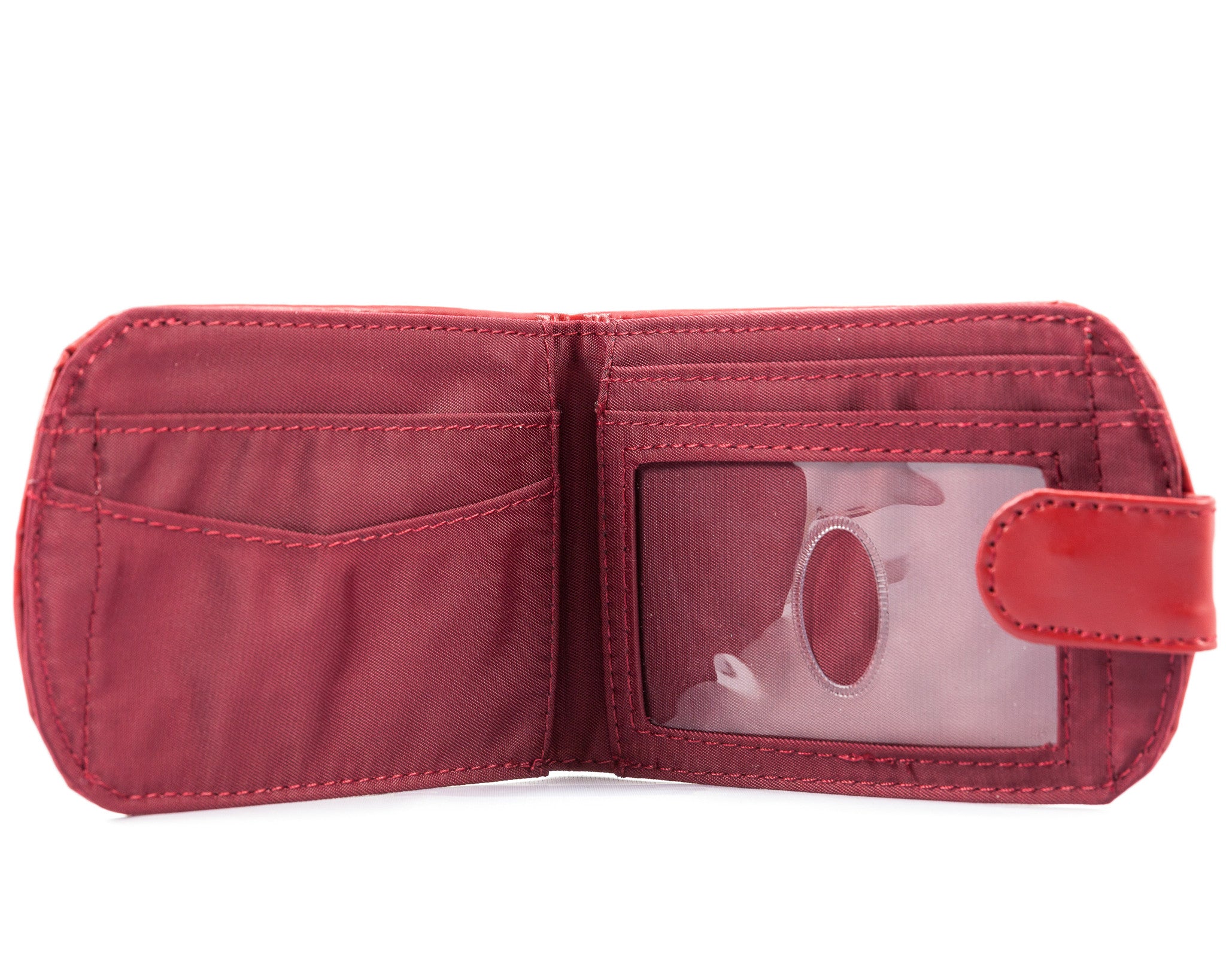 The Taxicat has one exterior zippered coin pocket on the outside. On the inside are one extra-wide interior clear ID pocket, one billfold area and two extra-wide, deep credit card storage pockets. We make our inside pockets wide, because we know how it feels to get your fingers stuck trying to pull out your ID or a credit card. We add a non-slip coating inside each pocket to keep those important cards from spilling out.