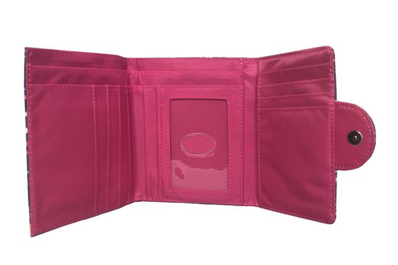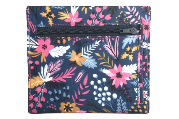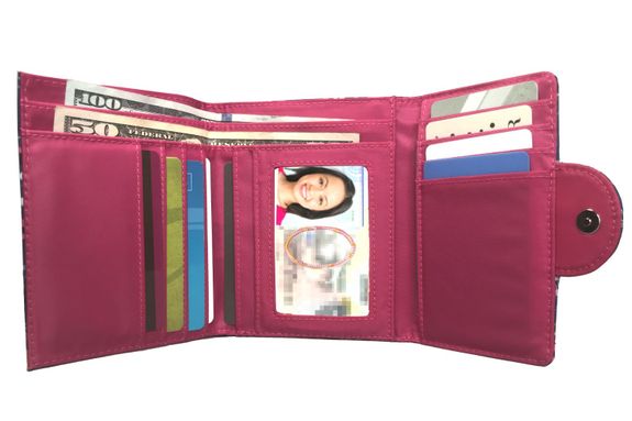 The zippered compartment on the back of this tri-fold wallet is roomy enough for a large handful of change, and the small magnetic closure keeps the whole wallet securely shut when it's being jostled around in your bag.