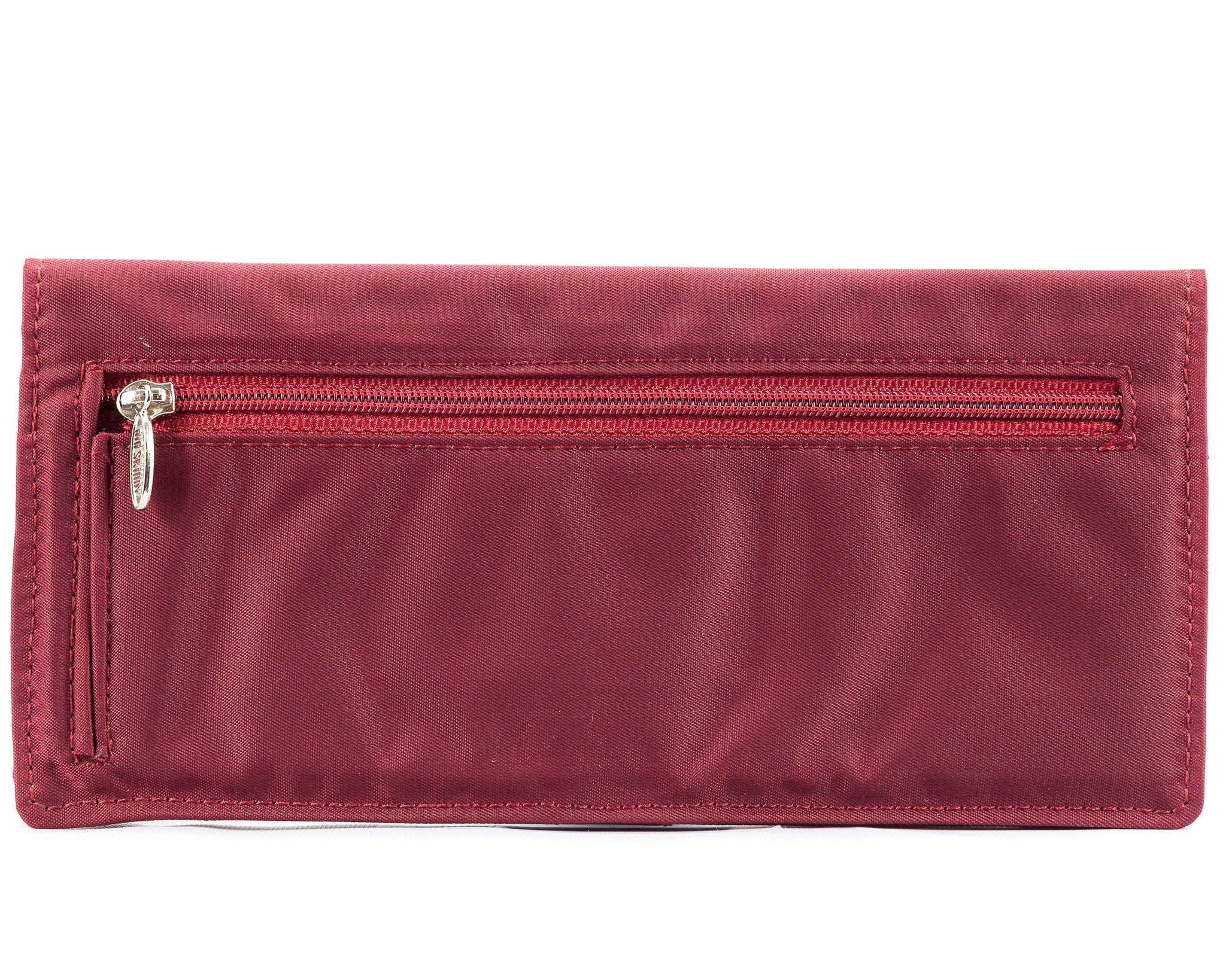 - Full-sized exterior gusseted zippered coin pocket