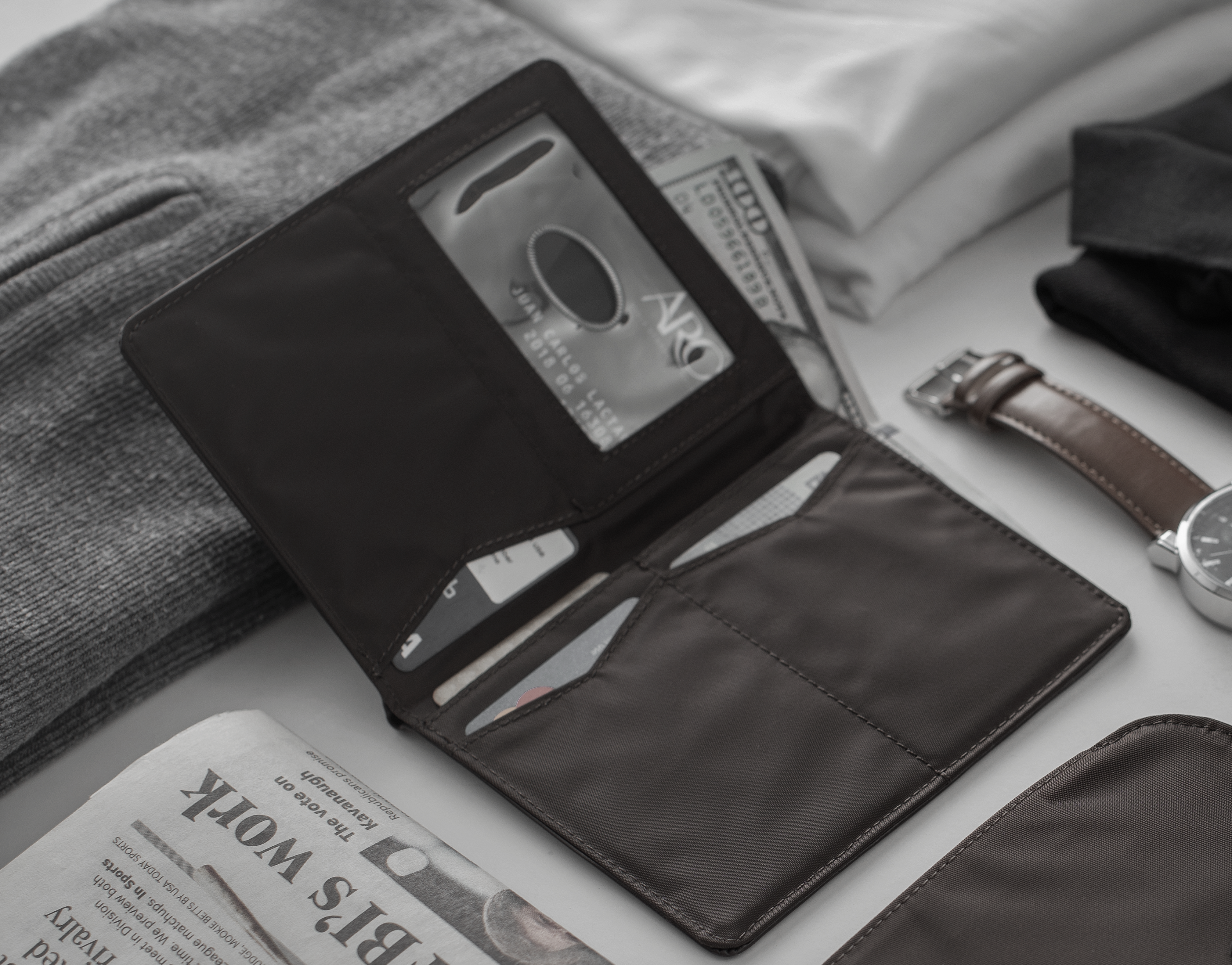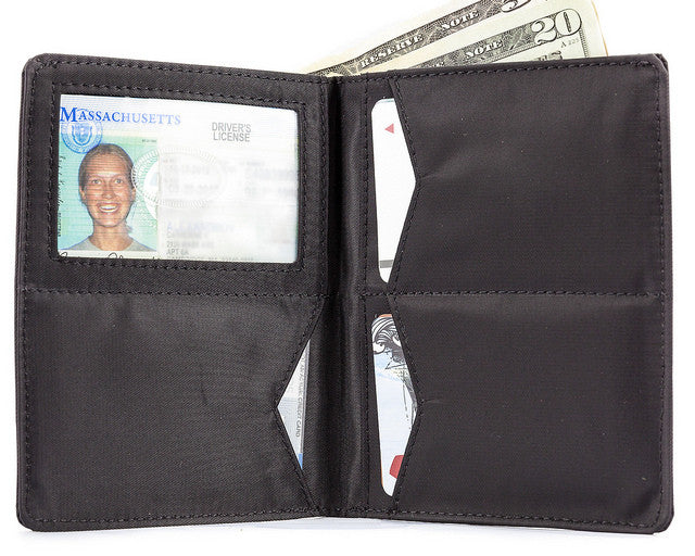 It's our proprietary nylon microfiber construction that creates a lightweight bi-fold that won't feel like you're sitting on a brick when it's in your back pocket. Our Hipster wallet has enough non-slip pockets inside to hold up to 35 plastic cards, plus a stack of receipts and plenty of ones. Our wallet for men and women relies on "divide and conquer" architecture with pockets divided strategically to allow you to space out your stuff.