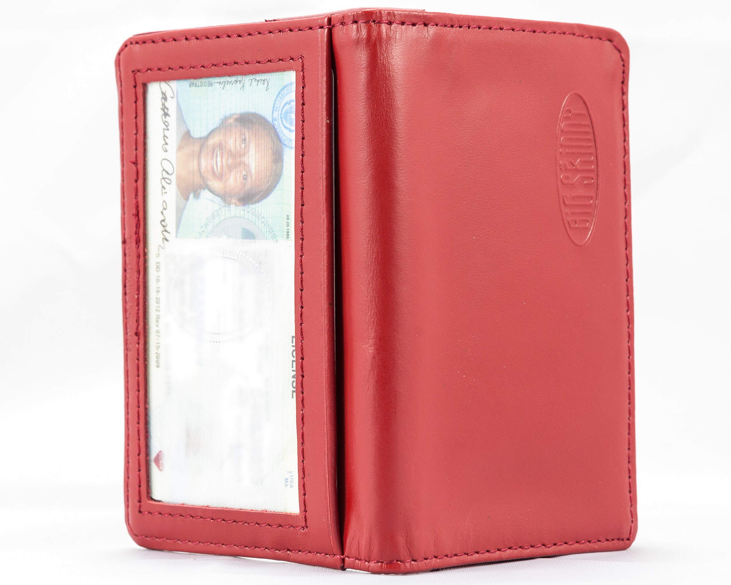 This gusseted marvel expands to accommodate a hefty stack of all that plastics [up to 15 cards!] you've accumulated throughout the years [if they're all gift cards, feel free to take us shopping with you]. External clear plastic ID window displays the smiling face on your driving license and can hold 3+ cards. Inside pocket opposite gusseted pocket holds another 3+ cards. This card holder is the Hybrid version: top-grain cowhide leather on the exterior and ultra-thin, nylon microfiber on the interior. Looks + sensible design.