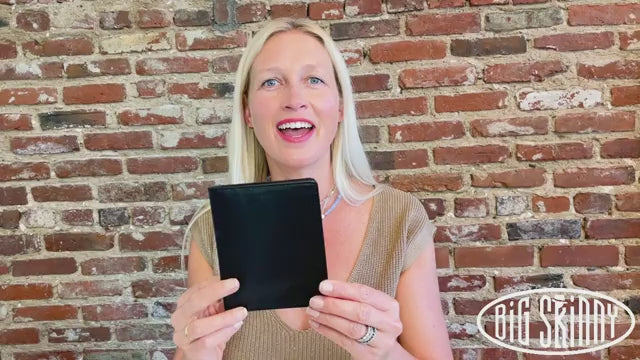 Three deep card pockets allow you plenty of room to divide up your credit cards. A clear extra-large ID pocket holds your ID card and more plastic. A large hidden pocket inside the Hipster will hold more stuff. The Hipster billfold is 4 3/8 inches by 5 3/8 inches in size. We guarantee your satisfaction with any of our world's skinniest wallets. Order a Big Skinny gift card for best friends and clients.