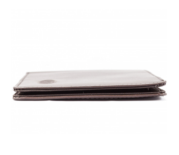 Most wallets just keep stacking cards on top of cards, this thin wallet design cuts them in half just like one cuts a deck of playing cards. So this thin wallet will be half as thin as even our other designs and four times thinner than a typical leather wallet with the same amount of cards and cash. The wallet math is pretty good eh? Not bad, especially since all the extra-wide pockets can fit a total of 35 full-size plastic cards and you still have the billfold area for cash, receipts, etc., and whatever else you choose to put into the hidden pocket. Now that’s sleek. Slim and light. And flexible--designed with joints so it flexes along with your body whether in your back or front pocket. And this super slim wallet still fits in regulation male-sized front or back pockets smoothly. And now you can have the Best of Both Worlds: super-thin top-grain leather on the outside and ultra-thin nylon microfiber on the inside.