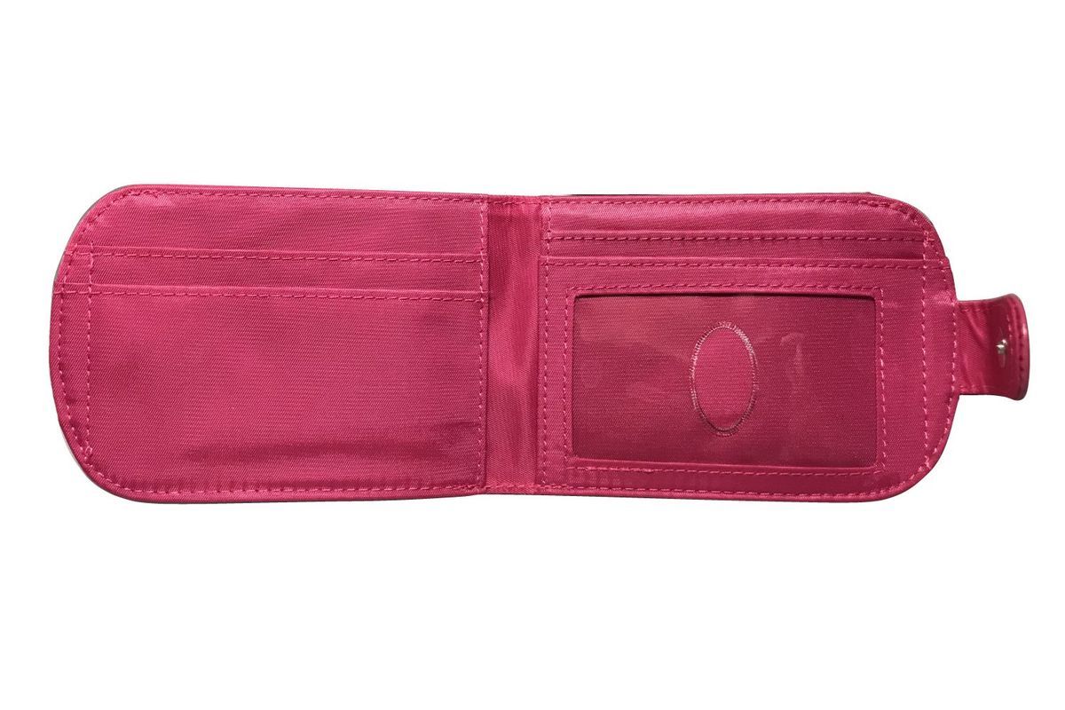 This thin wallet has a nifty coin pocket on the outside to feed the meters. The snap enclosure and rounded ends were added to make it easy to tuck into a purse or front or back pocket. You can carry it in the palm of your hand. It will hold as many as 15 plastic credit and ID cards, plus folded money.
