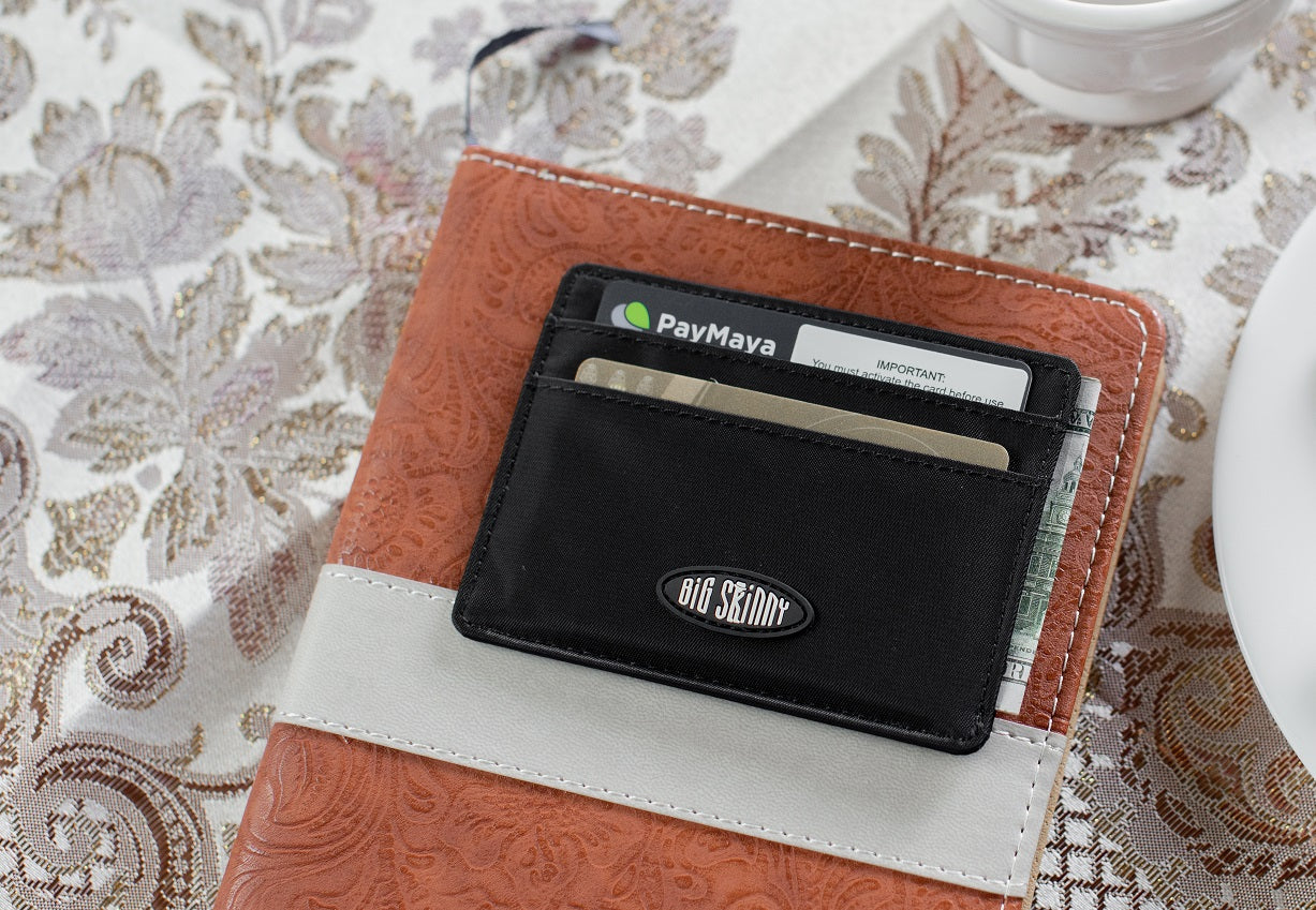 For any ladies that love small clutches, the Mini Skinny is a great way to conveniently store all of your valuables in a tiny package that will fit easily in your purse. No more loose cash and ID cards swimming around the bottom of your clutch just waiting to spill out the moment you undo the clasp. This wallet is great for minimizing bulk, reducing the weight of your purse, and keeping your valuables safe and secure.