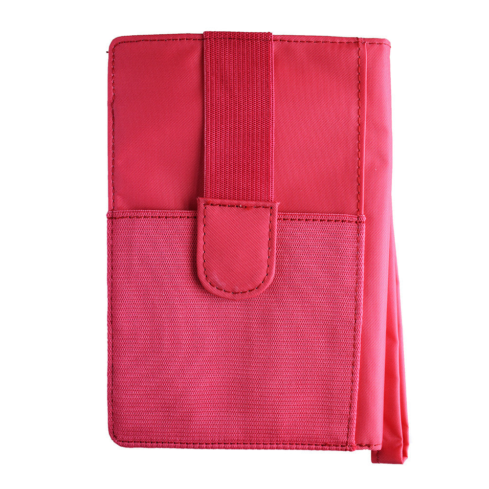 - Cell phone pocket on reverse holds phone in securely with elasticized strap