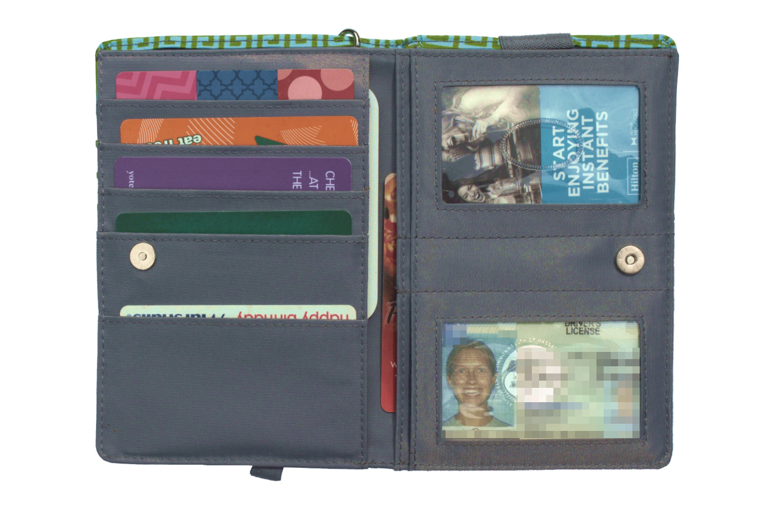 - Full-sized billfold area accommodates international currency