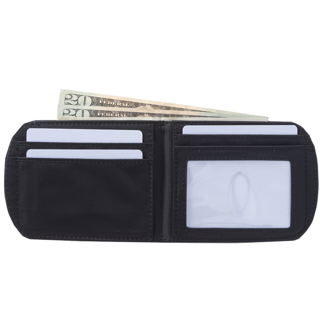Our most popular front pocket wallet got a turbo boost with new RFID blocking technology! Our nylon microfiber Curve Wallet is lined with RFID blocking material, stave off date thieves and keep your information safe! Front pocket wallet carriers, this is the model for you! We hate to state the obvious, but hey, it's fun: the curve is designed with two-rounded edges to fit neatly in your front or back pants pocket. Crafted from tough, machine-washable, nylon micro-fiber, this ultra-thin wallet can hold about 15 plastic cards and cash. The pockets and billfold area are lined with a non-slip coating to help prevent your goods from sliding out: smart!