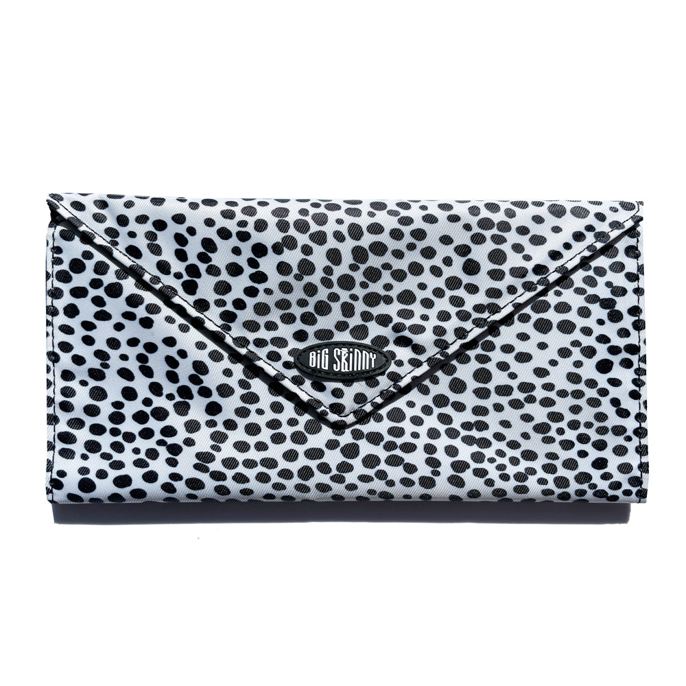 There's more. On the exterior is a full-sized zippered pocket to hold even more of your essentials. It's extraordinarily lightweight because of the high-tech nylon microfiber construction. This material allows us to make the world's skinniest wallets at Big Skinny. We believe there's never a right age to carry around the extra weight of a brick-sized wallet or clutch purse. That's why we invented the Slimvelope. Enjoy!