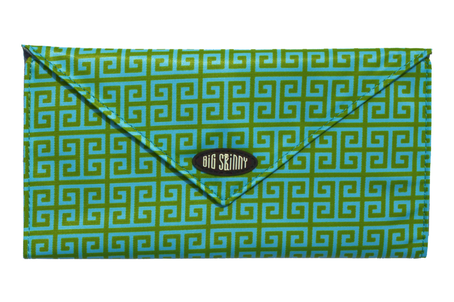 There's more. On the exterior is a full-sized zippered pocket to hold even more of your essentials. It's extraordinarily lightweight because of the high-tech nylon microfiber construction. This material allows us to make the world's skinniest wallets at Big Skinny. We believe there's never a right age to carry around the extra weight of a brick-sized wallet or clutch purse. That's why we invented the Slimvelope. Enjoy!