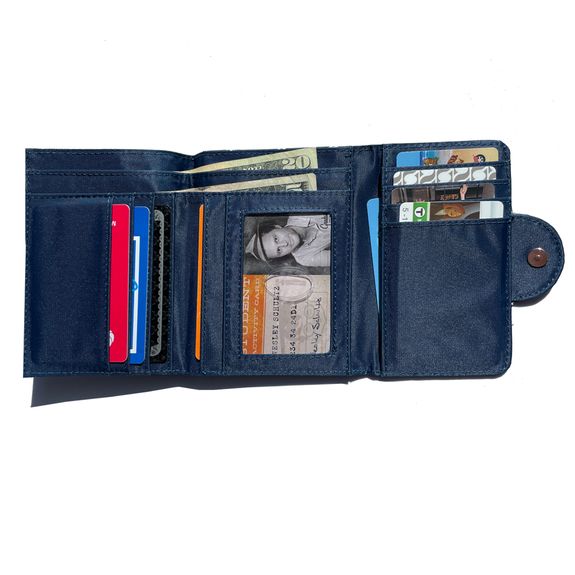 Big Skinny's Trixie Wallet is a cross between the high capacity of our Executive wallet and an expanded version of our regular tri-fold wallet but it leans toward the tri-fold wallet side making it more compact.