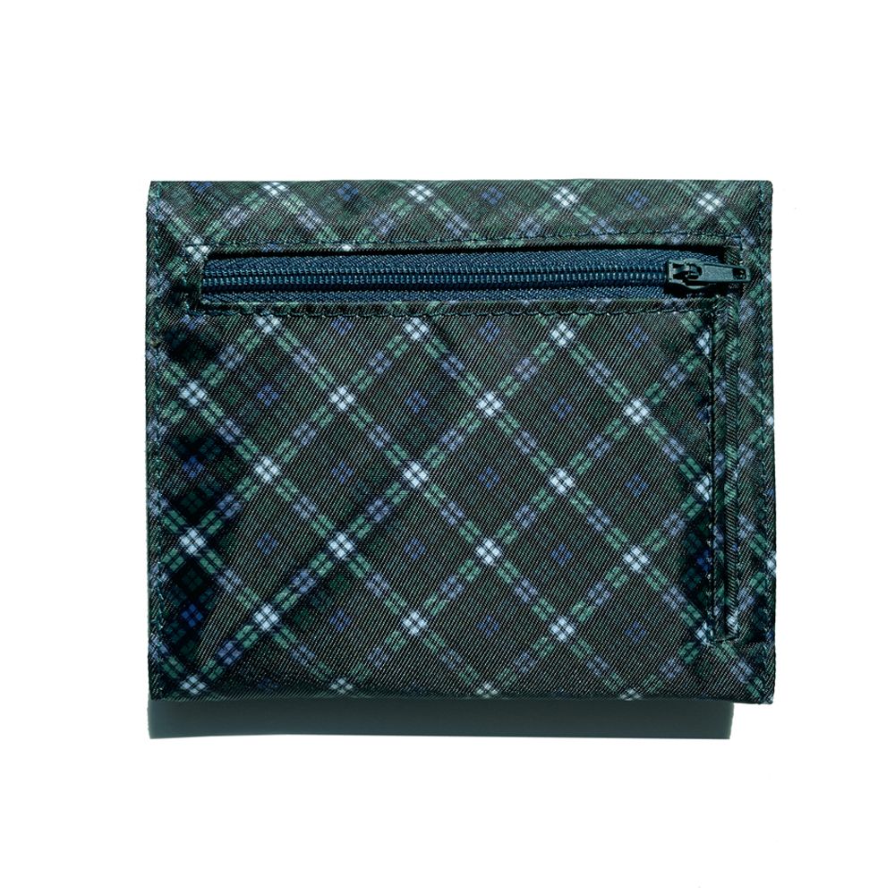 The zippered compartment on the back of this tri-fold wallet is roomy enough for a large handful of change, and the small magnetic closure keeps the whole wallet securely shut when it's being jostled around in your bag.