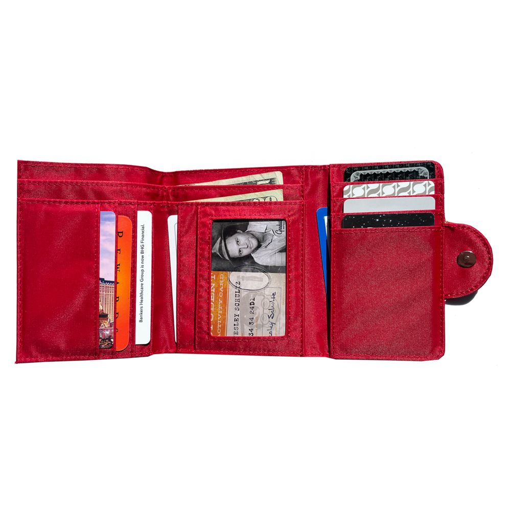 Big Skinny's Trixie Wallet is a cross between the high capacity of our Executive wallet and an expanded version of our regular tri-fold wallet but it leans toward the tri-fold wallet side making it more compact.