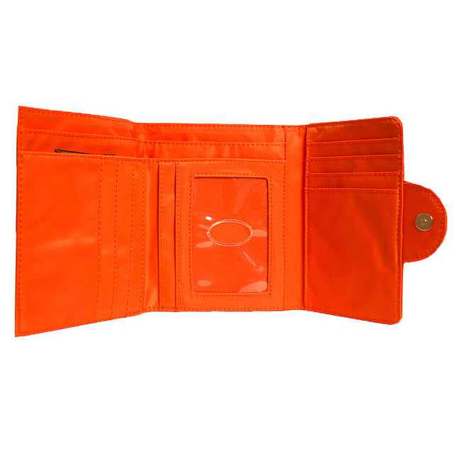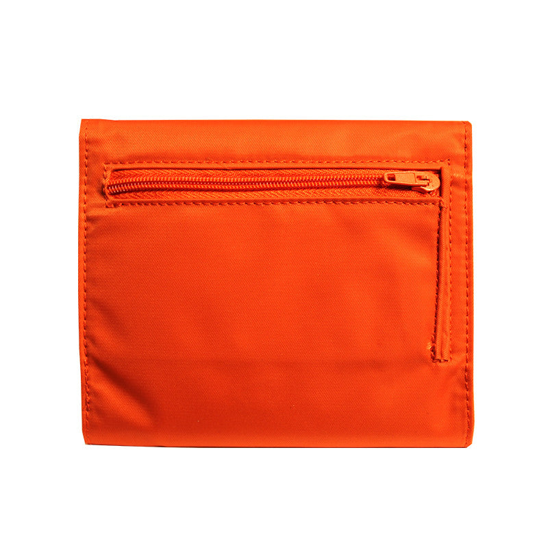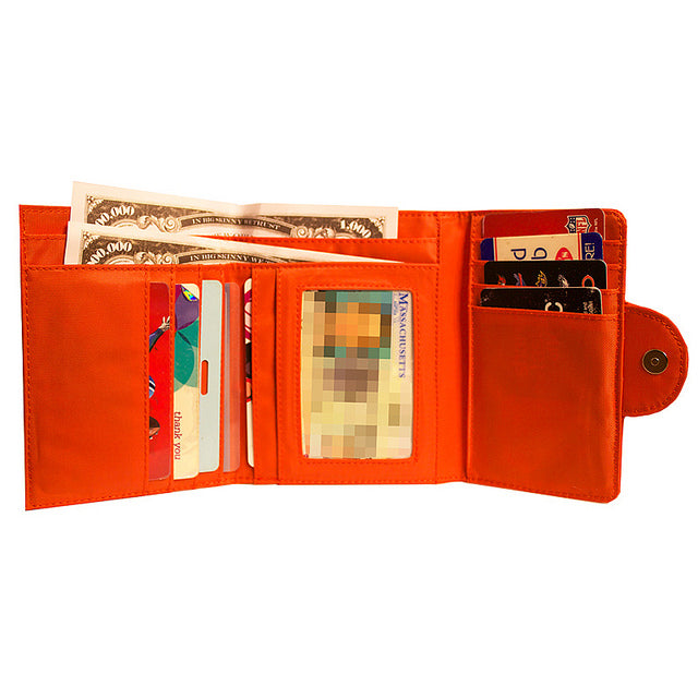 The zippered compartment on the back of this tri-fold wallet is roomy enough for a large handful of change, and the small magnetic closure keeps the whole wallet securely shut when it's being jostled around in your bag.